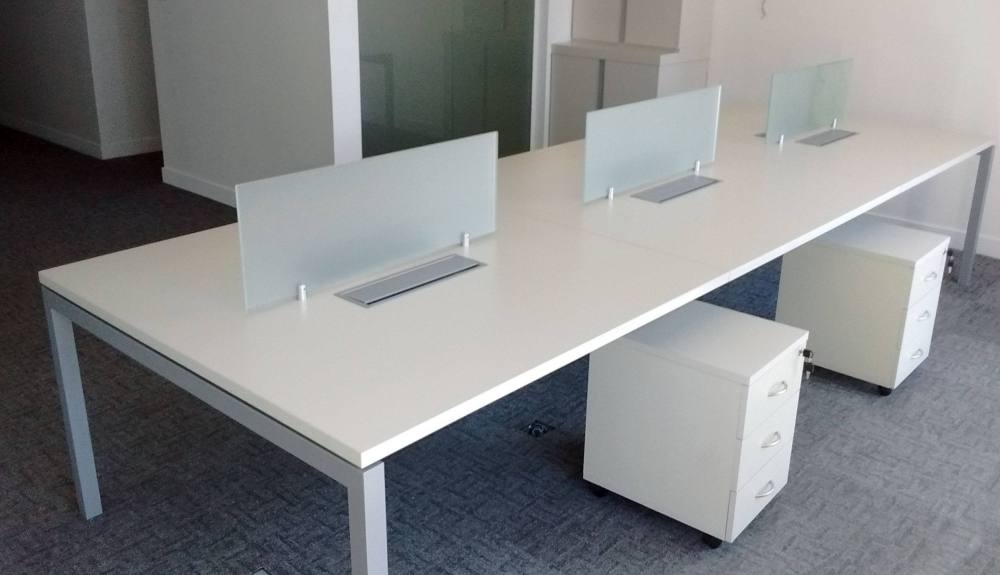 Cuentan con una base de metal compuesta por: los extremos cajonera de cajones mas espacio libre, y en los extremos base arco de metal pintado en epoxi. Brindando solidez, funcionalidad y modernidad. Tapa en melamina color a elección, con terminación de tapacantos anti golpes. Con divisores, pasa cables, porta tomas, porta cables y muchos mas accesorios optativos. Ideales para formar islas de trabajo individual, doble, cuádruple, séxtuple, o lo que sea mejor para tu proyecto.